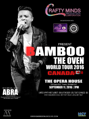 Crafty Minds Production Corporation in cooperation with Beauty Enhancement and MStudio present: BAMBOO THE OVEN WORLD TOUR 2016 CANADA with special guest: ABRA