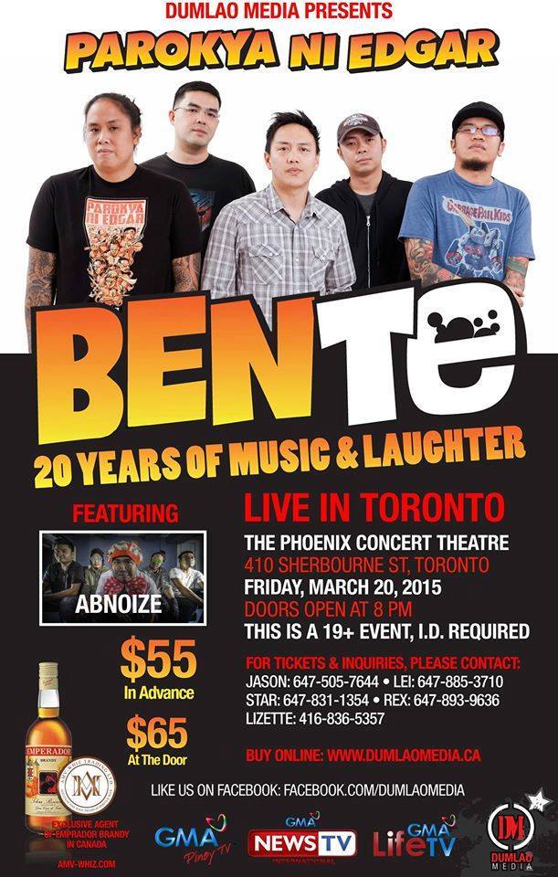 For ticket or sponsorship inquiries, Contact: OPHIE VALDEZ: 416-570-1568 ophelia.valdez@yahoo.ca; MIKE CRUZ: 416-795-8985 audiospin@gmail.com; BELINDA REYES: 647-686-9841 info@pinoyevents.ca